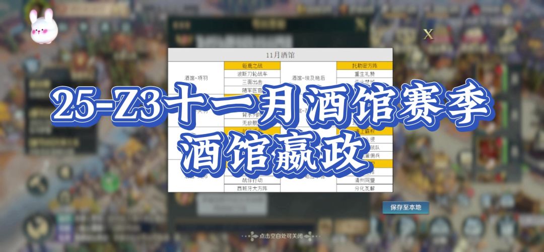 2025年Z3十一月酒馆赛季,酒馆嬴政配将分享。