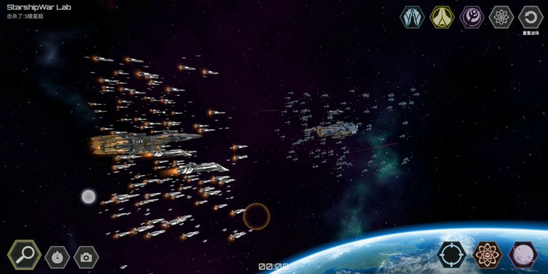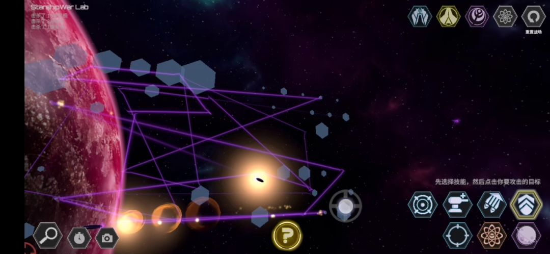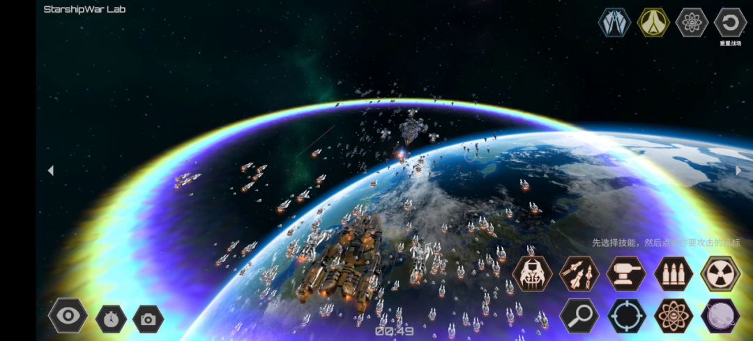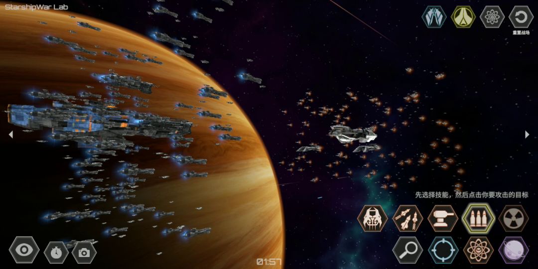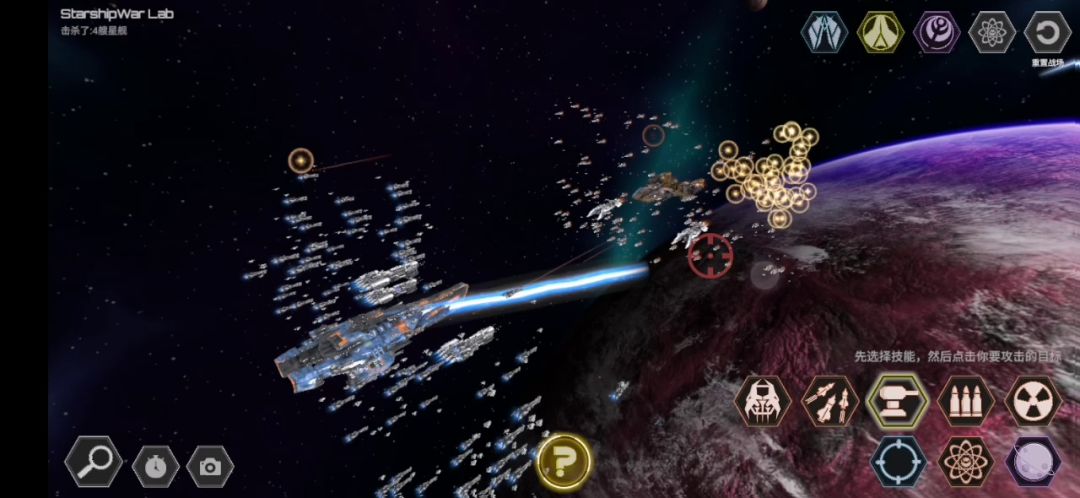 1.蓝方释放大和炮(?)将黄方除旗舰外的飞船打个差不多,注意要照着边缘打,不然容易把旗舰都打爆了。 2.蓝方释放核弹,黄方用第三个技能持续轰击蓝方旗舰,一会儿核弹便被拦截 3.一个小bug:核弹被拦截后蓝方再释放核弹会直接爆炸,但没有伤害