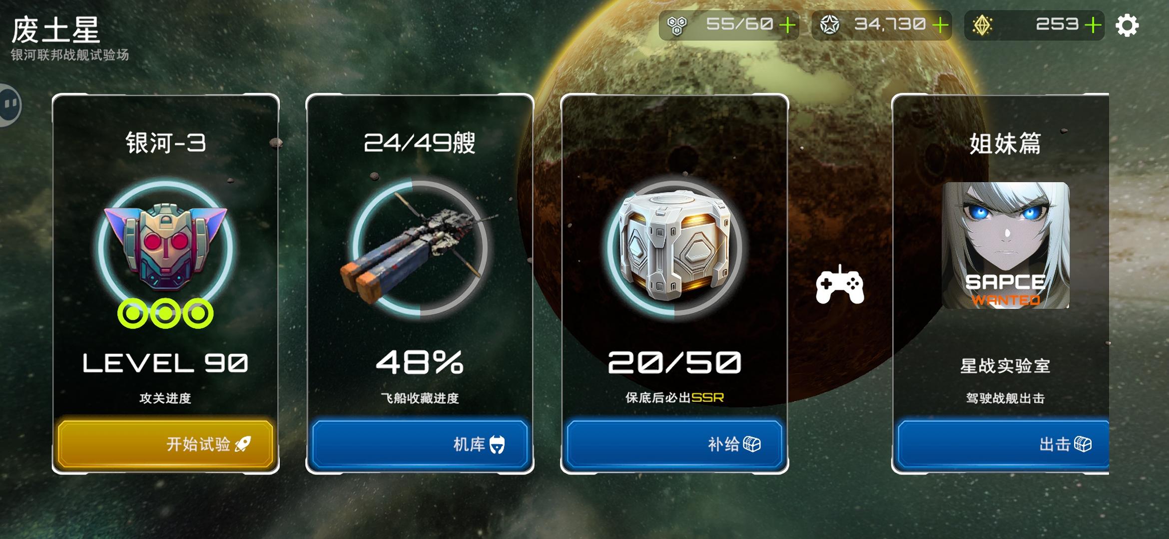 写这个的目的是希望能吸引一些新手入坑,以及讲讲这个游戏的玩法。那现在开始!(注意所以的技能名称均为本人自称,官方名称不知道)一.基本操作如图,这是进入游戏后的画面。最左下角的放大镜是调整视角,点击即可转动观察角度。右边的是时间放慢,类似砸瓦鲁多的削弱版(?)再右边是截屏,没啥好说的下面一排中间的是广告,可以通过看广告获得技能,可操控战机的皮肤,背景星球等(如图)点击你要释放的技