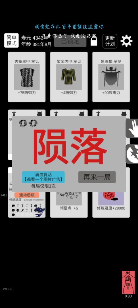这个游戏之前也玩过,权当打发随机无聊时间,说简单也简单,说难也难,至今为止只玩通过普通精修,体修和法修没通关过。简单也说下心得吧。第一这是个单机数值游戏,算法原理很简单,对方攻击-你的防御=你掉的血,血量低于0死亡,怪物反之同理;第二,自身属性来源主要是秘境,自身升阶关系到秘境属性的升阶,秘境最高七级;第三,精修百分比减对方攻击,对应地要提升自己的防御,解决生存问题,能站住才是硬道理;第四,秘境属