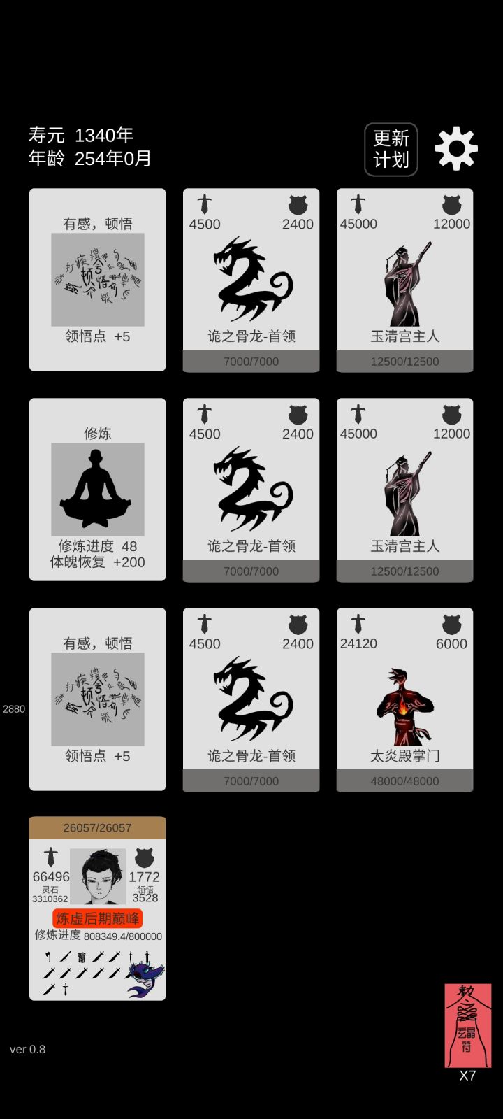 这个游戏之前也玩过,权当打发随机无聊时间,说简单也简单,说难也难,至今为止只玩通过普通精修,体修和法修没通关过。简单也说下心得吧。第一这是个单机数值游戏,算法原理很简单,对方攻击-你的防御=你掉的血,血量低于0死亡,怪物反之同理;第二,自身属性来源主要是秘境,自身升阶关系到秘境属性的升阶,秘境最高七级;第三,精修百分比减对方攻击,对应地要提升自己的防御,解决生存问题,能站住才是硬道理;第四,秘境属