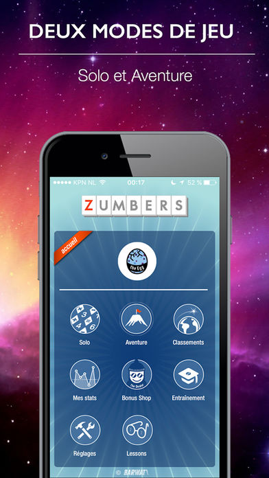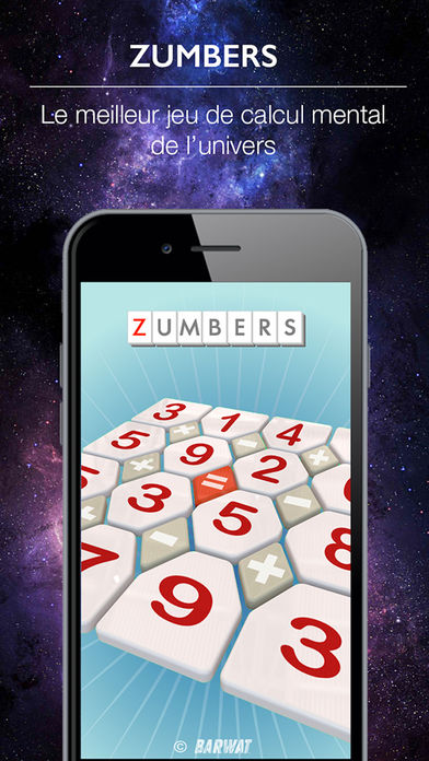 Zumbers : un jeu de calcul mental où l’objectif est de trouver des équations, et de les tracer sur une grille. Plus les équations trouvées sont complexes, plus elles rapportent des points !