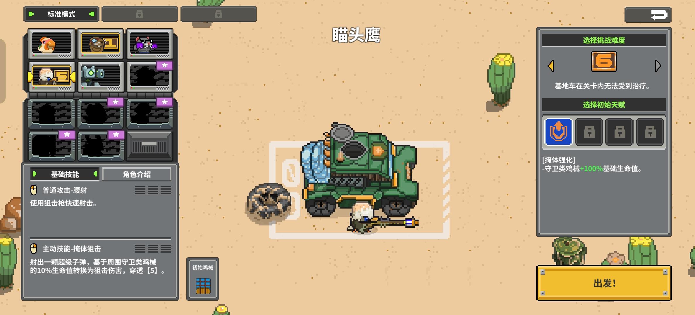 然后最开始的时候还可以选角色,角色的能力好像也是不一样的,在最开始的时候还可以选后面整体的难度。