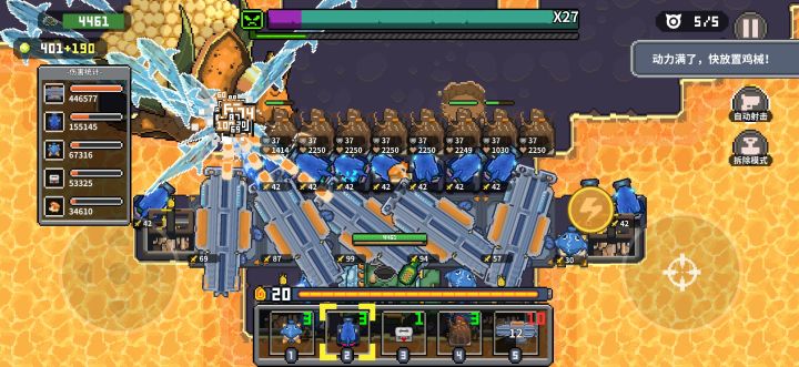 一,三个喷水鱼鸡选第二个技能(三发子弹)。喷水鱼抽虫卵+两个高回弹组建(概率加攻击力)开局门口放个墙,快速去远处矿上放个鱼。再回来守。一会儿能量就满了。技巧1.震荡核弹放在鱼腥草塔(飞爪陷阱),或和平鸽快递(加血箱)开局炸快速满能量。2.钻地鼹鼠采矿非常好用。适用大部分战术。三连击,完美战术(加攻击加攻速)x23.黄金稻草鸡第二好的墙。最强是初代稻草鸡。震荡核弹,精华爆发(治