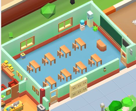 1.教室教室是学生、老师上课的区域,学校里一共有6间教室,每间教室可以提供8位学生的入学名额。教室里可供建造、升级的设施包括:2.财务处 财务处是财务人员的办公区域,学生在此办理入学手续。财务处可供建造、升级的设施包括:3.食堂 食堂是提供学生就餐位置的区域,也可提供一部分的收入来源。食堂可供建造、升级的设施包括:4.花园 建造后解锁“许愿”功能,每次许愿都可以获得金钱奖