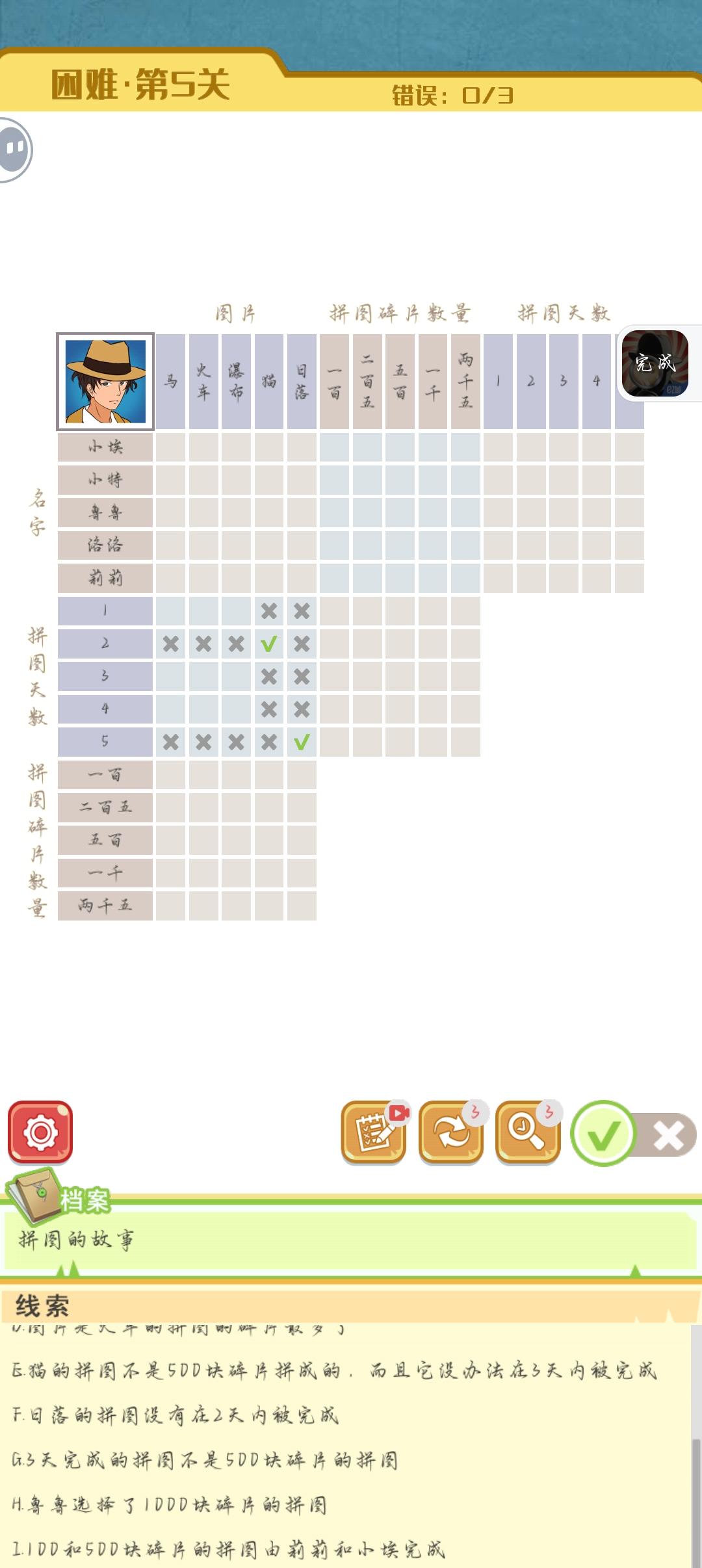 猫的拼图不能在三天内完成,4已经❌了,不就是5天嘛?我请问呢???还能怎么理解?