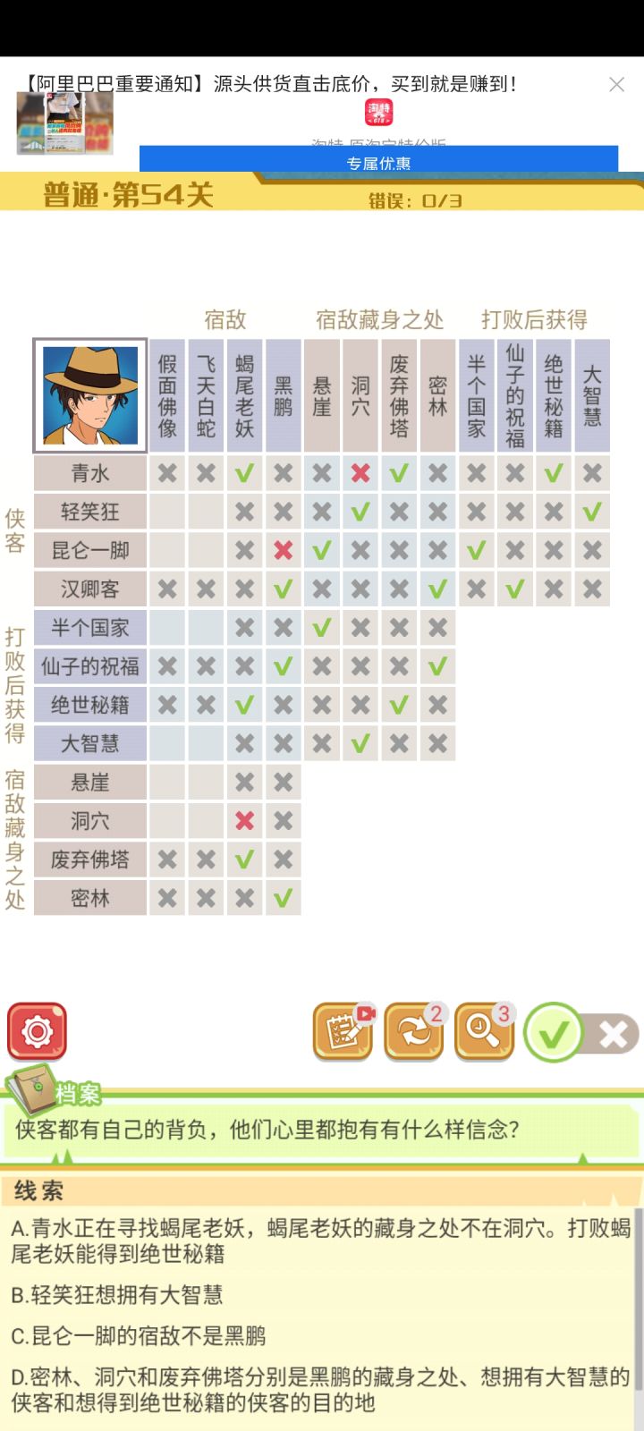 普通关卡里有一关给的线索竟然明显的前后矛盾,这是非常低级的错误啊,不知道是文本问题还是线索设计的问题,这种低级bug你们居然没有修复。