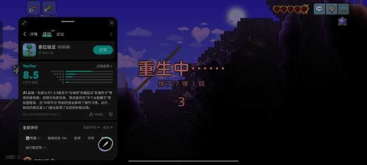 泰拉瑞亚永远的神,但不得不说的是和PC比起来,pe操作手感很史,心动的BUG也比国际服多,但是游戏好这一点毋庸置疑。