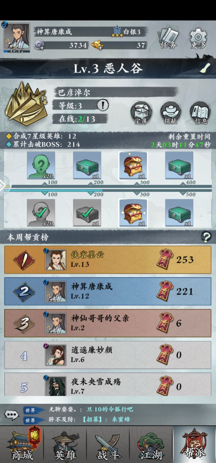 武功来了,最本质的就是金卡的获取,这里列下几个金卡获取渠道 免费通道: 1. 每日银币商店,有几率金卡,可以刷新十次,建议拿下 2. 连跪后的888元宝购买金卡,建议必拿下 3. 盒子商店里面,有时候2488双金卡,建议必拿下,所以元宝不要乱花 4. 免费的两个战令奖励 5. 观影阁看广告,一周必得一个金卡 6. 赛季结算,钻石必拿一个金卡 7. 合作宝箱,游戏很靠积累,新手可以世界里面找人带合作,开箱子 8. 记得输入秘钥拿元宝 充值推荐:6元首充 30卡 和至尊卡 强卡推荐: 1. 新手以萧为核心,勉强钻石 2. 进阶以周为核心,有朱姑凉最好 3. 超一线金卡推荐 毒王 魏小春 东方不败 杨过 笛子 令狐冲 有一说一,这魏小春是真的贱啊