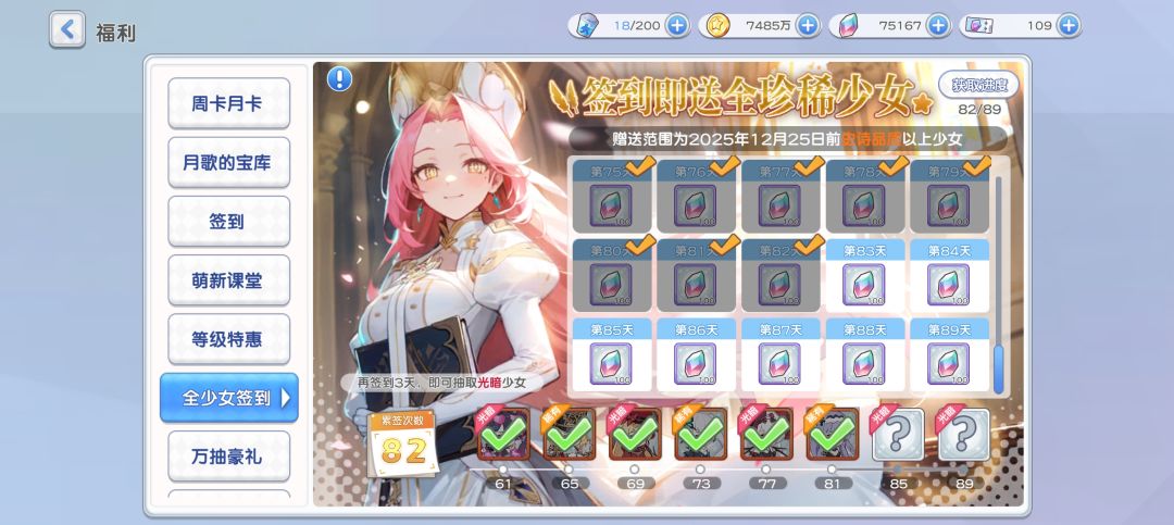亲爱的指挥官: 我们将于7月23日 20:00 对服务器进行闪断更新维护, 维护结束后发放全服补偿, 感谢大家配合 【维护时间】:7月23日 20:00 【维护补偿】:钻石*200 【维护内容】: 【新增内容】 1. 新增夏令活动,将于7月24日4:00开启 2. 新增稀有史诗少女哀怜,UP活动将于7月31日 0:00开启 3. 新增史诗少女春梦 4. 新增【团队竞技】头像框 5. 新增【种族争霸