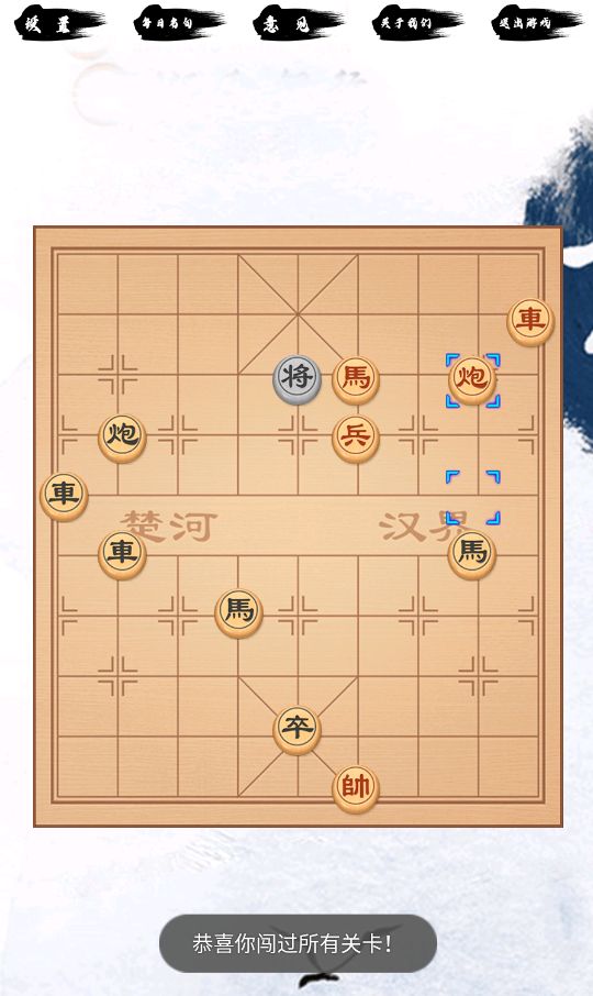 象棋闯关共计3715关,后面的很有难度。3715关攻略: 1. 炮二进二 将4进1 2. 车一退一 士6进5 3. 炮二退一 士5进4 4. 炮二退三 将4退1 5. 车一进一 将4进1 6. 兵六进一 将4平5 7. 兵六平五 将5平4 8. 兵五进一 将4平5 9. 马八进六 将5平4 10. 马六进四 将4平5 11. 车一退一 将5进1 12. 炮二进二