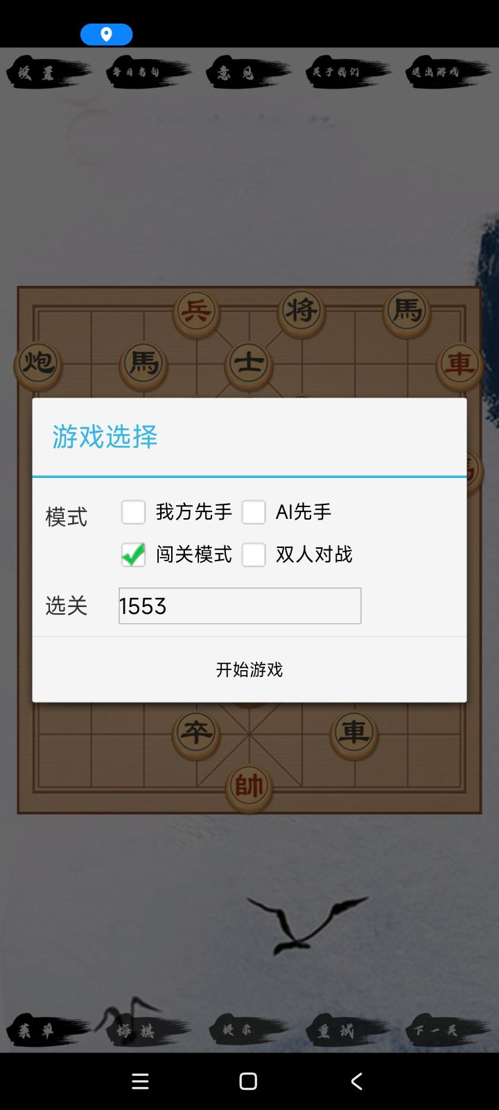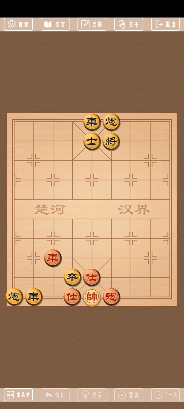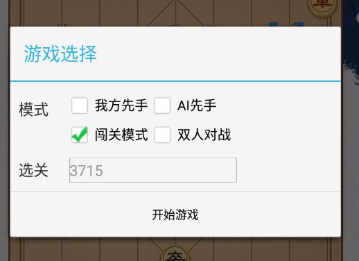 象棋闯关共计3715关,后面的很有难度。3715关攻略: 1. 炮二进二 将4进1 2. 车一退一 士6进5 3. 炮二退一 士5进4 4. 炮二退三 将4退1 5. 车一进一 将4进1 6. 兵六进一 将4平5 7. 兵六平五 将5平4 8. 兵五进一 将4平5 9. 马八进六 将5平4 10. 马六进四 将4平5 11. 车一退一 将5进1 12. 炮二进二