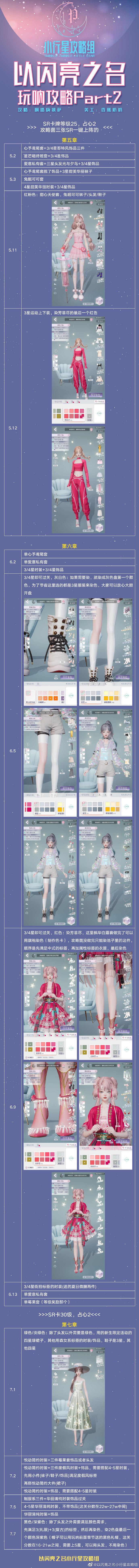 十七章玩呐攻略视频 17-3,0′02″,分数预计35万以上 条件:适合度假旅行的衣服、大海的颜色 风格:性感、甜美 标签:度假风 无需染色搭配:头发冰华天音+送的六星银颂晶音/蝴蝶来信+鞋子星海拾贝+颈饰漠色月牙+手饰花梦纤语 (其他符合条件的衣服和饰品都可以,条件满足分数够就行); 17-5,0′32″,分数预计50万以上 条件:三套完美通关、中式时装完美通关、穿戴发饰完美通关、三套不重样衣