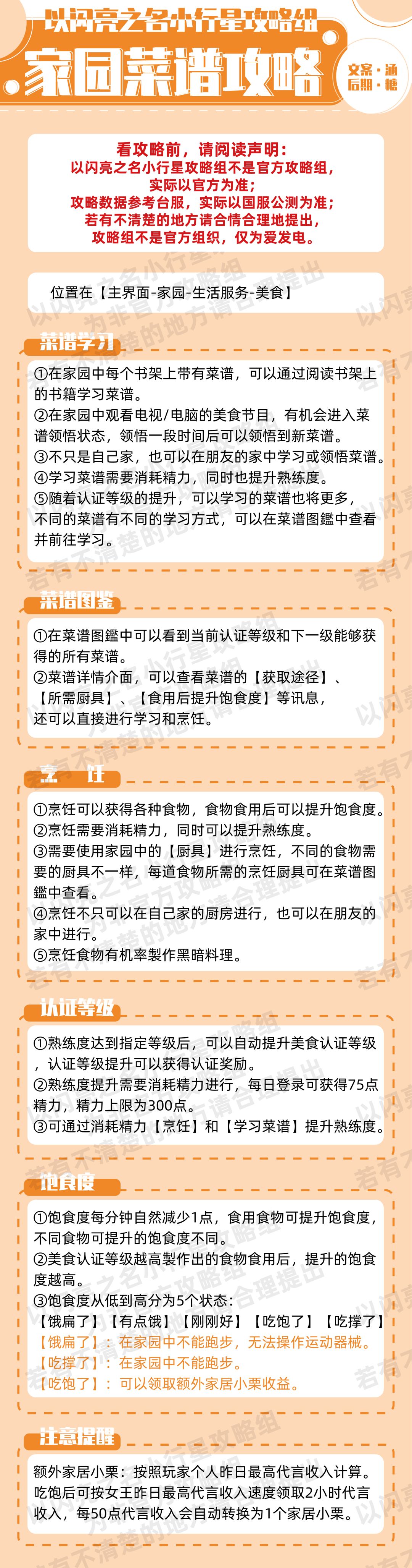 小厨娘看过来~《以闪亮之名》家园菜谱攻略来了~