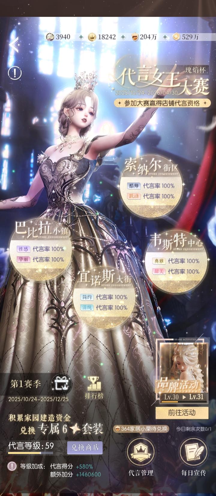 哈哈哈哈,今天一下子拿齐了2套免费六星,好开心!!尤其是代言的,我今天是头一次全都是100%!!!然后时尚对决也是那么快就把六星给集齐了!!还得感谢好攻略,怎么没让我早点遇到攻略!唉,导致时尚对决里的好多六星五星都错过了,感觉现在根本没时间去集齐