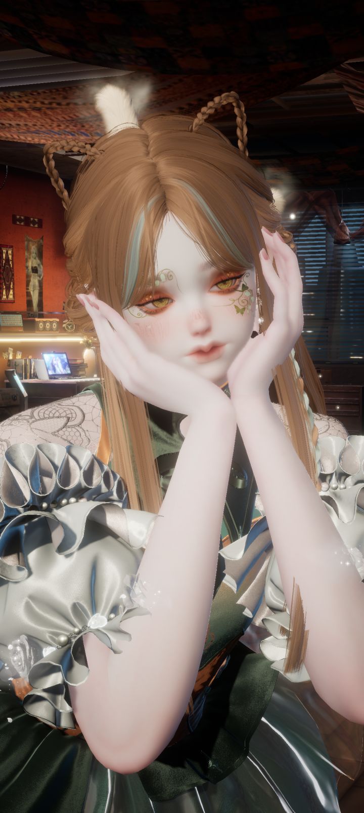 好像有bug了,此发型戴这个新常驻六星的发饰显示不了,必须要换另一个发型再切回此卷发才能显示,但先发型后戴发冠还是无法显示(此号新马服)