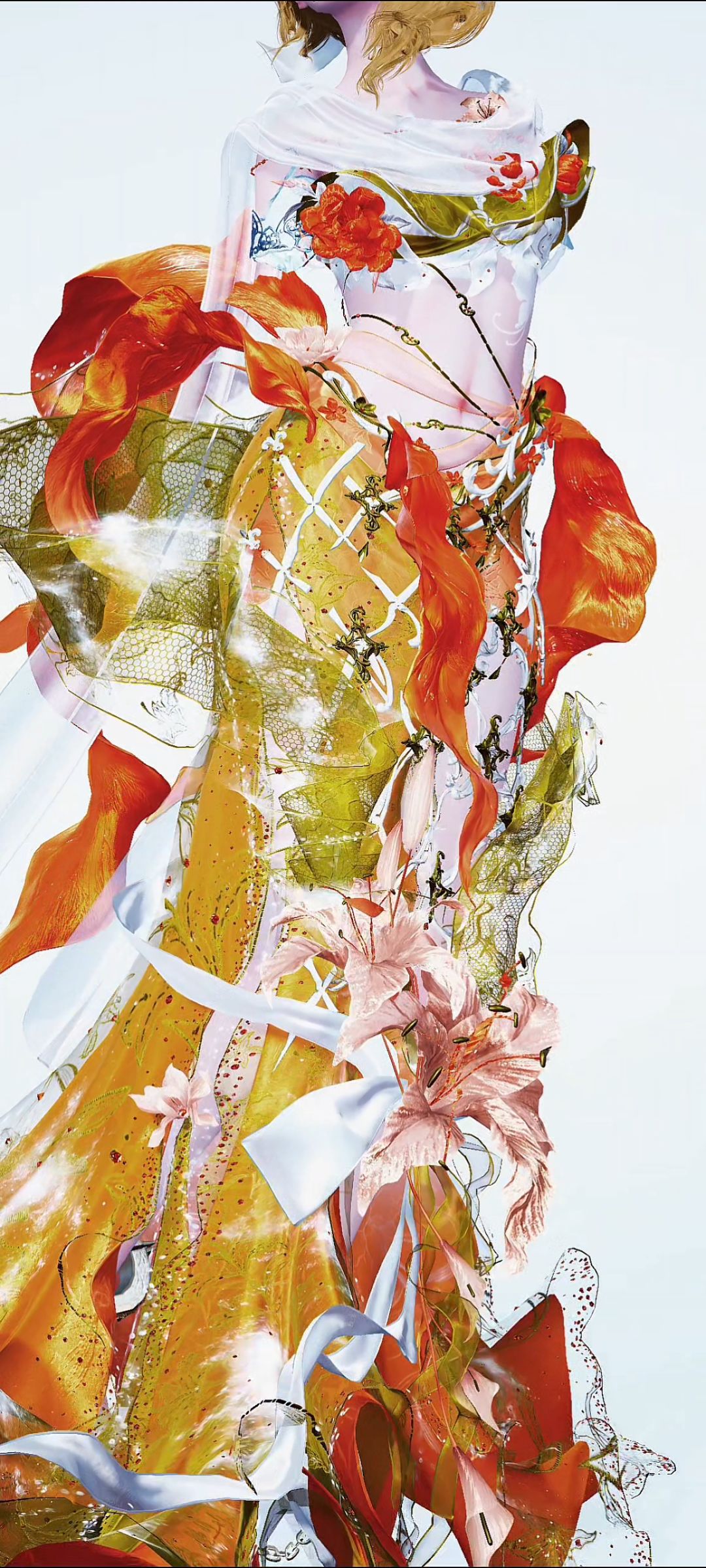 兜帽两三个尖尖角哈 原套装的兜帽背后和裙子居然不能接在一起吗 下身胯宽人模灾难 注意注意,这不是上下装!这是连衣裙! 感觉头发好看,但是只是在兜帽下好看,所以搭配必须带帽子头饰。 感觉项链还可以,臂环人模手臂粗的不太好看(比如我的)但感觉也还行。