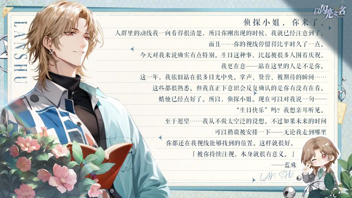 蓝殊生日快乐 | 人群茫茫如海,你是一盏不摇晃的灯