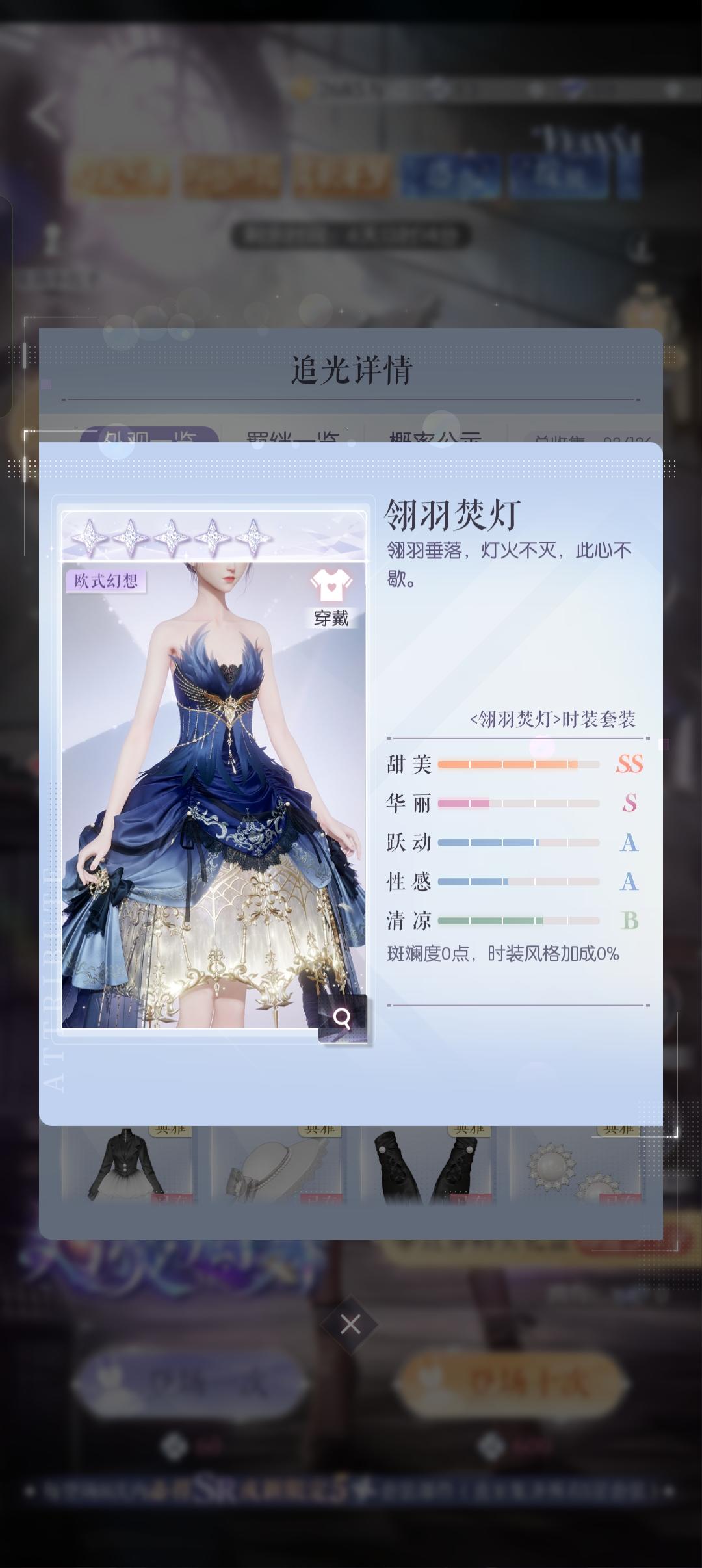 四十二抽一共三个部件,这条裙子刚42抽抽出来的,甚至中间连ssr卡都出了都没有出其他小件,小件就两个,第三个是这个裙子,我抽鬼新娘阁五抽三金,不过都是散件,有一个鬼新娘头饰……我都怀疑这个卡池的欧气都到鬼新娘那边去了,,我都在想要不要抽鬼新娘阁不抽这个阁了,但是我还是想五星裙子比六星好获取,还是咬咬牙一直抽这个阁,还好出了这条裙子,不然主播就真的非酋附体了,,#以闪亮之名