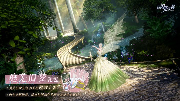 【礼包时间】3月10日10:00-3月23日23:59【礼包说明】限时礼包售卖期间,合伙人可以4.6折的价格直接购买庭芜旧梦外观礼包,内含摄像机镜头动态动作【越林抚风】、拍照场景【森庭旧梦】、拍照动作【森间戏灵】、拍照运镜【越林抚风】、聊天气泡【林间密语】、背景音乐【越林抚风】、潮流色卡*26和遇之钥*40,该礼包永久限购1次。TAPTAP:以闪亮之名官方微博:@以闪亮之名官方微信公众