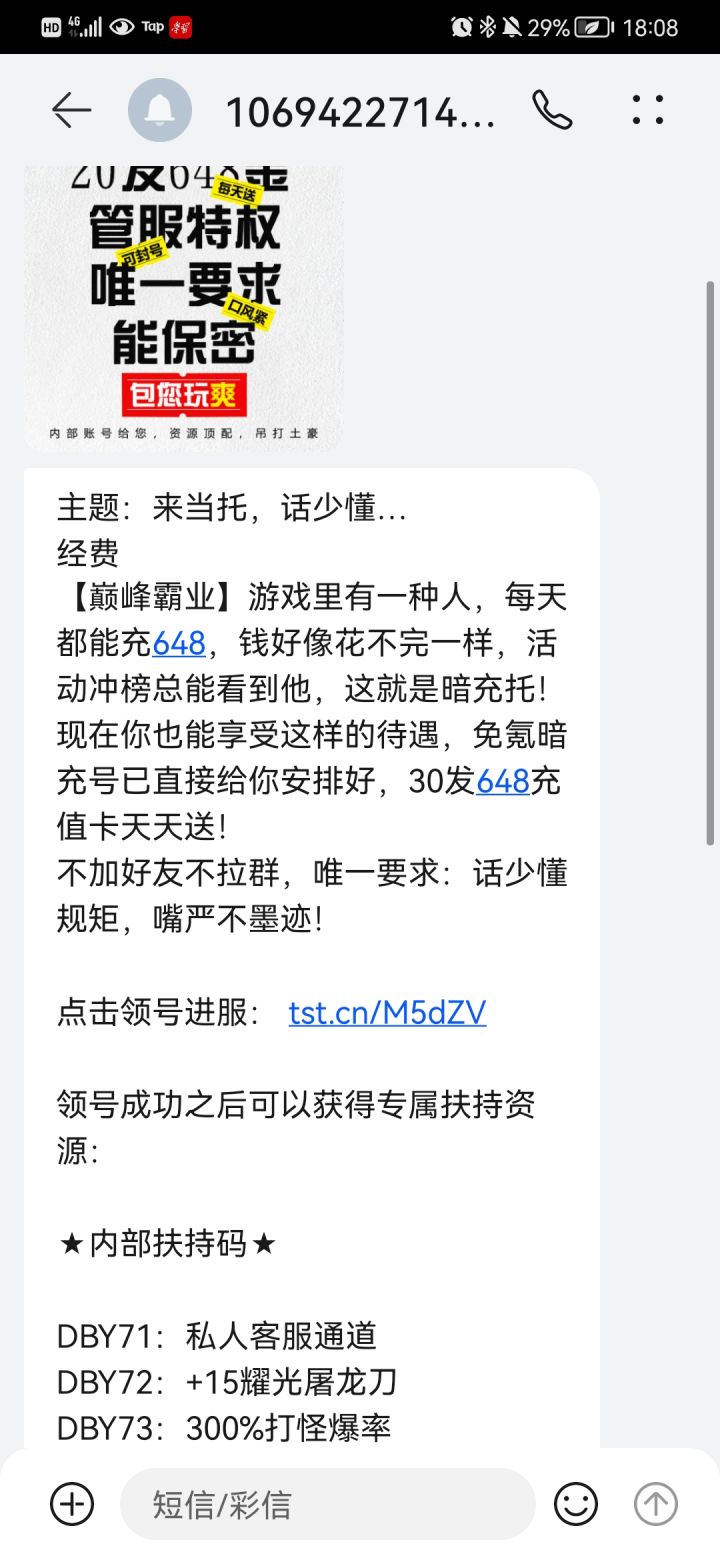能不能别甜美给我发短信了,一直骚扰用户,你这游戏能上线
