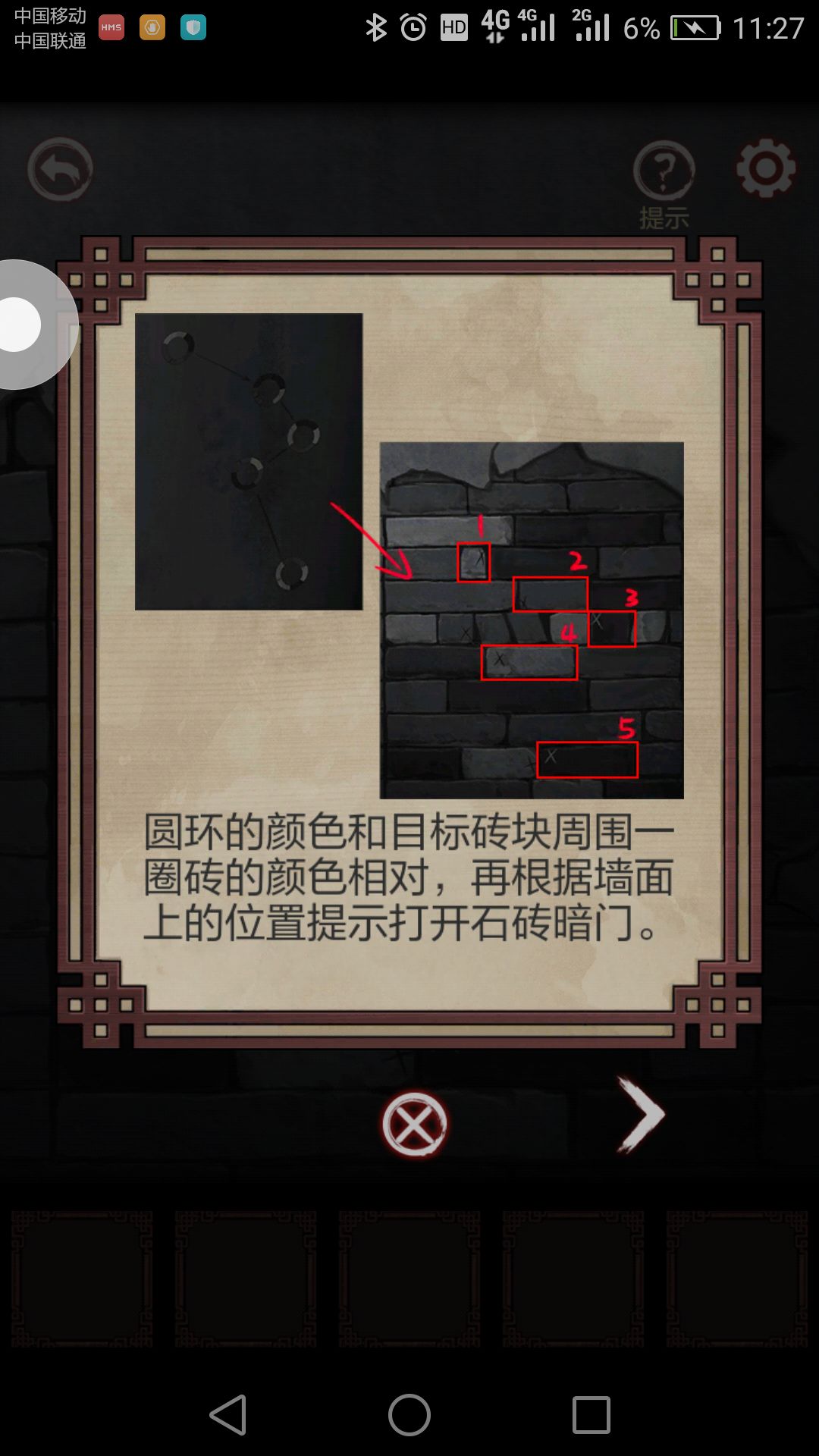 之前发的太凌乱了,这是我新整理出来的 进入游戏剧情对话玩跟着教程走一波,然后点击大门,观察两边牌子,得到线索:虎在最下面左边,马在上面,,龙在右边,熊在右边,凤在虎最下面右边,然后把把得到棋子放在大门旁边墙上画着五角星图案中,按照线索移动棋子,解开出现一个圆形拉环,拉动它,宛院门就开了 进入门里,看见一个水缸,水缸底下有堆沙子捡起来,在向水缸对面屋子进去,进去看桌子,上面放着线索,完成猜戏曲名,霸
