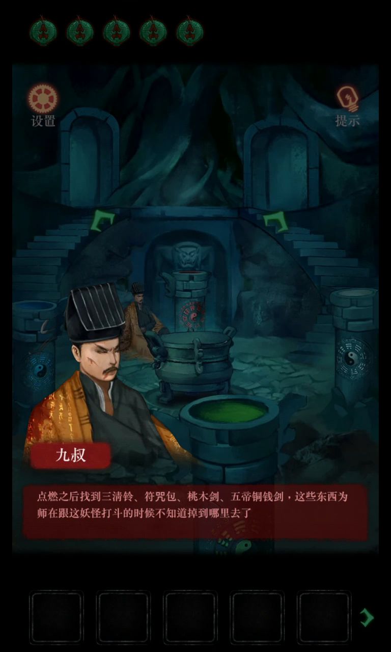 🌈🌈道士线 ✅第一章 1.来到院子,向左走,点击左侧桌子上的钥匙,再点击床上的枕头,拿开枕头,得到另一把钥匙。1、2、3 2.点击左侧的柜门,用刚刚捡到的钥匙打开柜门,得到用来供奉的香。2、2、3 3.回到院子向右走,用拿到的第一把钥匙打开房间。3 4.进房间,捡起床下的一把钥匙,点击房间右侧的柜门,记住上面的2579的位置,点击柜子,用刚刚记住的密码,打开柜子里箱子的盖子,拿到祖师爷画像。4 5