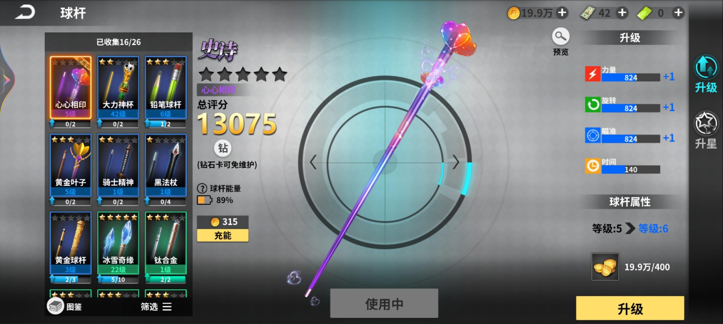 1星,对于第一次接触这个类型游戏的小白一切都是未知的。原来氪金点在球杆,各种球杆皮肤特效看着不错。