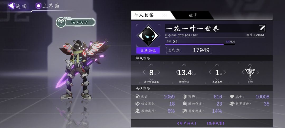 0氪45级3.2万战,浅谈游戏。 图1首充还在哈 5红武,4红机核,4橙时装。 主2星汉娜,单个1.75万 轻武,重武,哪个高星用哪个。 不pvp,主pve ,体力全买,硬把主线23章推完。 吐槽一下,装备更新换代太快了。 40红装没用几天,现在45又肝50红装了(今天出了2件),分解给的那点东西实在太抠了。 50红装不知道该不该换,只换2件攻击力的装备??2加4,硬屯到60级?? 不过主线没了
