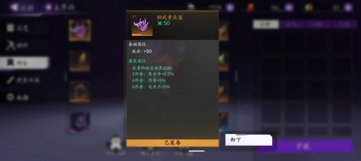 直接2个紫色开合,合成出心武者概率中出钢舞者概率极高,用钢舞者合成,必给500币+50%心武者,如图,我合了3次紫色二合一,炸了一次,一次心武者,一次钢舞者,钢舞者直接单件合,连合5次全是钢武,直接得2000币换了其他4件,最后一次出的还是钢武者1月2日,本人吃饱了没事干,又单合这个钢武头盔玩,又多攒了1000币