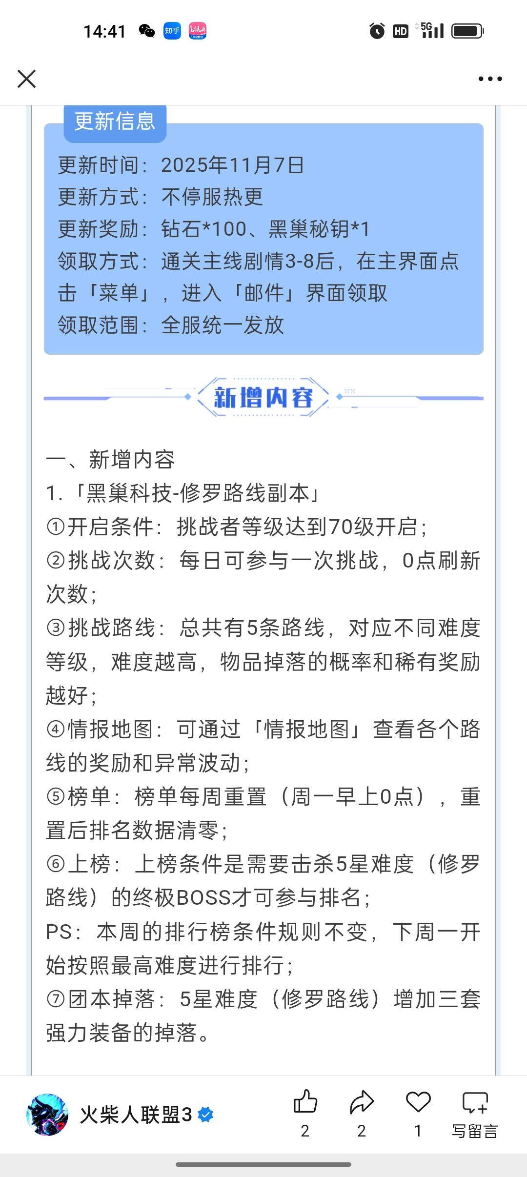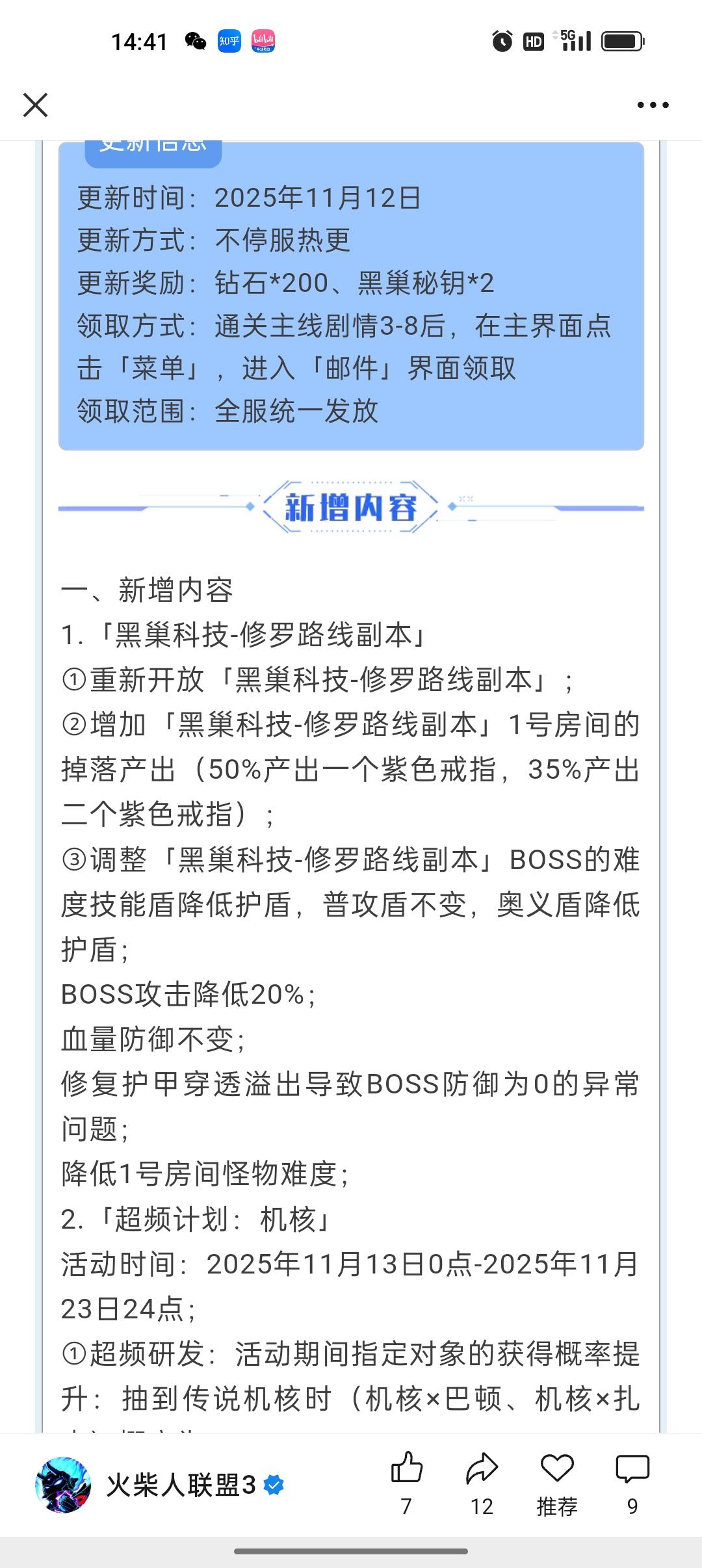 10月30日更新美其名曰:“优化时装武器「GT-800」飞行高度导致BOSS丢失的体验”,说白了砍GT800空飞行高度,不能飞出屏幕,跟BOSS有什么关系?玩什么文字游戏,真要优化BOSS丢失问题,策划你倒是解决机械章鱼飞天不下来的BUG啊?对玩家有利的立马优化掉,对玩家不利的不管不回当没看见?11月7日更新和11月12日更新,看起来像是让玩家打团本有更好的体验,实际上是11月7日调整降低团本获