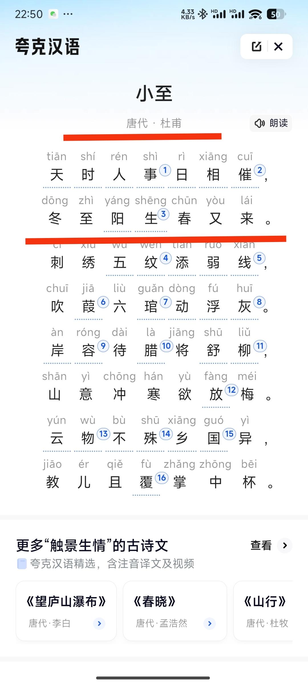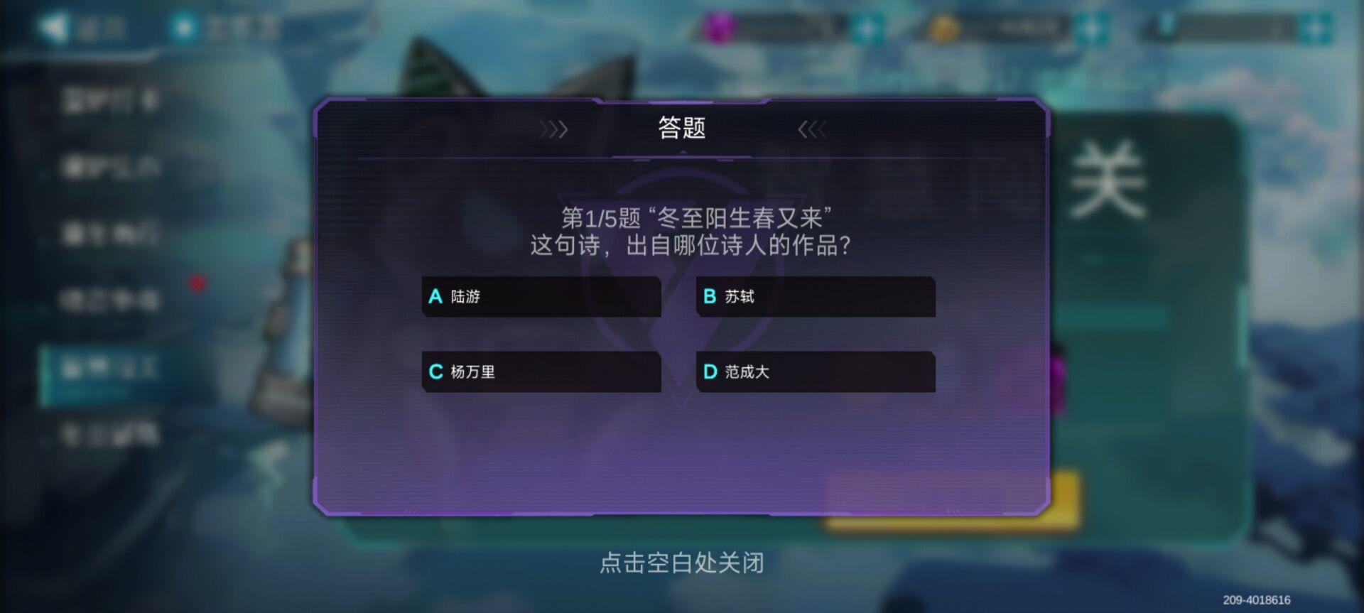 答题第1/5题“冬至阳生春又来”这句诗,出自哪位诗人的作品?A 陆游B 苏轼C 杨万里D 范成大真是天才!杜甫到底是抄袭了谁了的!
