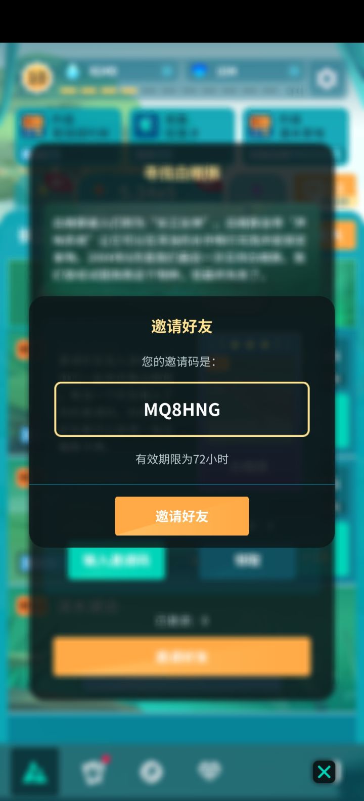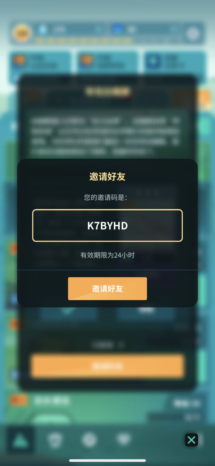 互邀,复制看这里→MQ8HNG输了留下你们的码。游戏是模仿那个奇点什么什么的,目前看来并没有超过那个游戏,希望更新更多玩法,个人还是挺喜欢这个类型