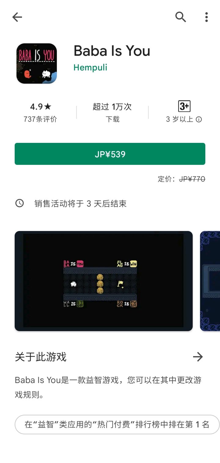 作为我心中2019年排得上号的独立游戏「BABA IS YOU」登陆手游啦,手游不仅延续了pc版所有的关卡,还对触屏进行了游戏优化,操作苦手们有福啦!虽然第一时间在各个应用平台进行搜索(原谅我祖传安卓机)暂未找到下载源,但希望iOS的小伙伴可以赶紧下一个抢先体验一下! 话说,现在的各个pc游戏都在陆续手游化,你心中最期待哪款游戏手游化呢?