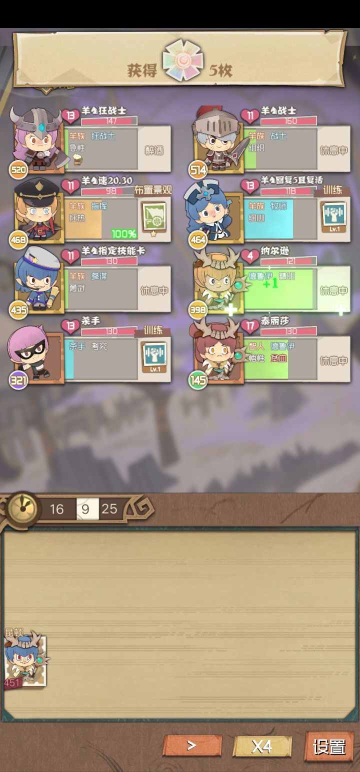 话不多说,上个图 !! 通关很好通 ,两个小时以上就可以通关!但是打完之后好像没上限,至少我前五个已经满级了,还没结束 !然后向大家展示一下个人的精品攻略 :1.种族自不用说 ,全选羊族 ,八个羊族的话 ,每个个体增加40%实力。2.开局主选第三排,前期+70招募 (演说家+王 )的开局很舒服。有人说选第二排恶鬼剑圣 ,攻击虽高,升级太慢,技能不行 !3.八人队伍搭配:主c两位 ,防止其