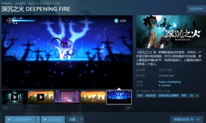 各位深沉之火的小伙伴们好呀,怀着激动的心情,在这里宣布一个重大消息:《深沉之火》steam页面开始预约啦!感谢一直以来的支持,经过一段时间的折腾,steam页面终于要开门迎客啦!期待在移动端体验的小伙伴也不用担心,虽然目前是PC端先行,但移动端也在尽全力适配中!所以还请小伙伴们再等待一段时间,我们一定会努力把游戏制作好,让双端玩家都能体验到最好的《深沉之火》~目前《深沉之火》steam页面已经