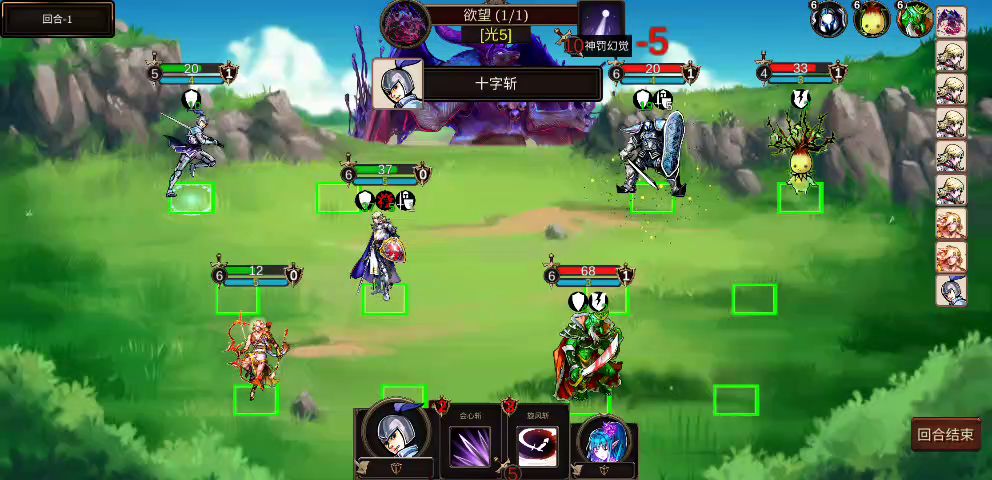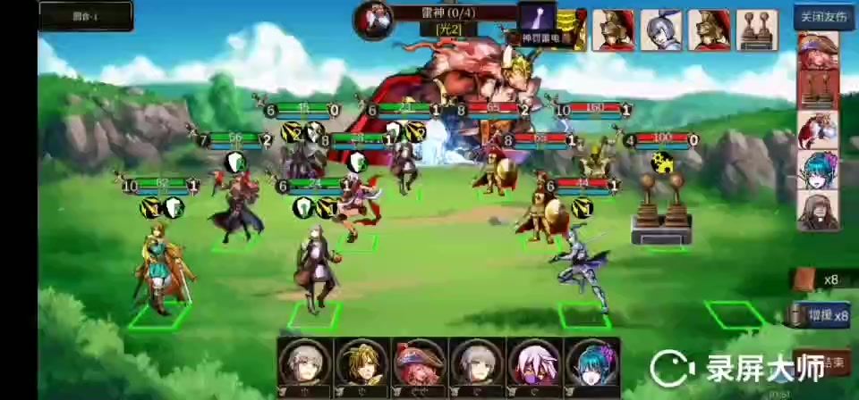7.初始阵容的配合:小怪随便打。第一关boss,近卫,指挥官在第一排。第一轮直接过攒一轮行动力。第二轮近卫加两次盾把光,通过指挥官被动拉高光。指挥官给后排输出角色加神圣之力。这样输出效率最高。