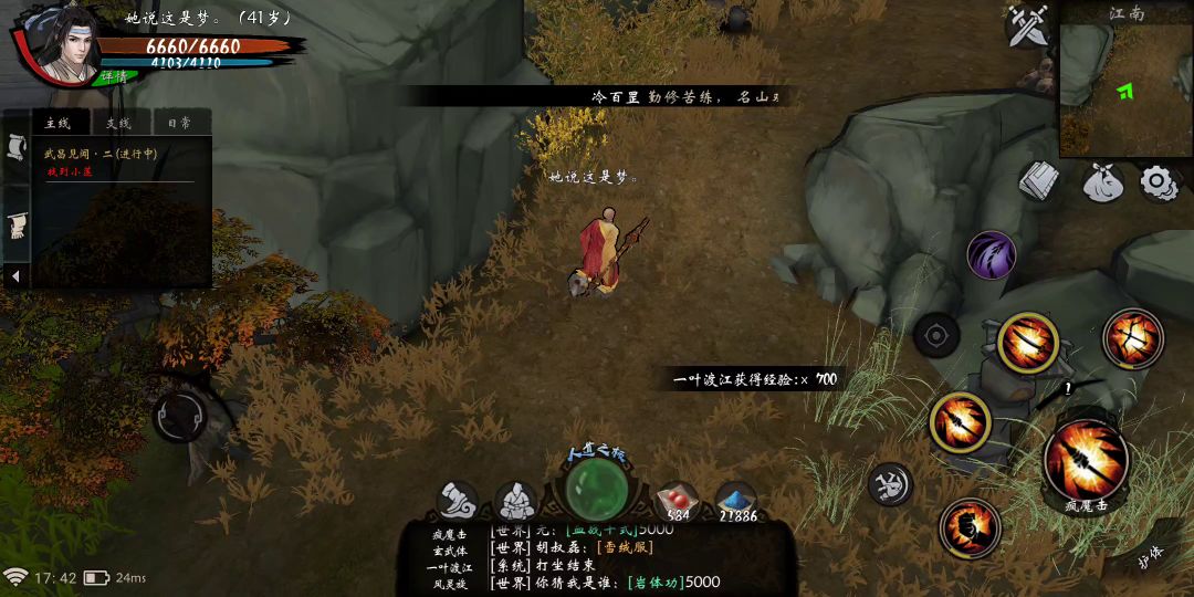二本萌新攻略思路,主要体现拳,剑,刀的特点以及一些技巧装备属性搭配,互相学习。不要看装备,以及境界人道一样过本。只是时间长短问题还有前期准备问题。 拳:速度快,但是命中低,维持高防御高,开门三只蝎子,可以一起引,还有萌新经常疑惑的一个问题,怎么群怪,首先得达到两个条件第一你有10万铜币去商店买本江湖武学“风灵漩”,问题来了前期如何刷钱,书院可以刷钱这里需要一定的装备基础,装备差的可以去刷乞丐,最次的就是新手村刷鸡卖鸡蛋了,也有机会出玉佩,玉佩价值1万铜币。现在来说第二个要求,武学达到9阶,也就是满级才能发挥出风灵漩的技能效果也就是群怪,有些氪金小白,上来买了技能发现没作用,不是游戏问题是你对游戏的理解不够。 剑:速度没有拳头快,但是命中高,攻击力中等。 刀:还击高,还击高,还击高。