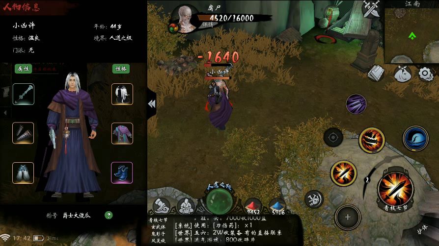 天人斧头弄庄劫,7阶段紫色斧头东海技能64血一摸,夺天技能117血一摸,1-2个半小时摸死,8阶绿斧头,夺天202血一摸,46分钟摸死中途分神。