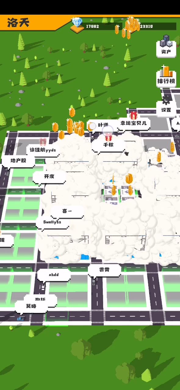 找到一块正在抢地的郊区,这时候车车满屏跑,小手一点钱就来了😏