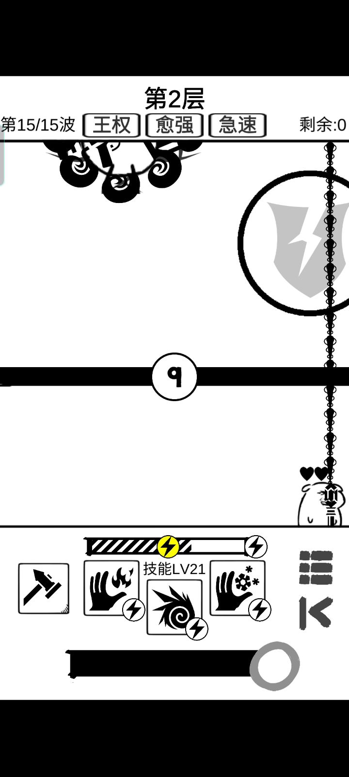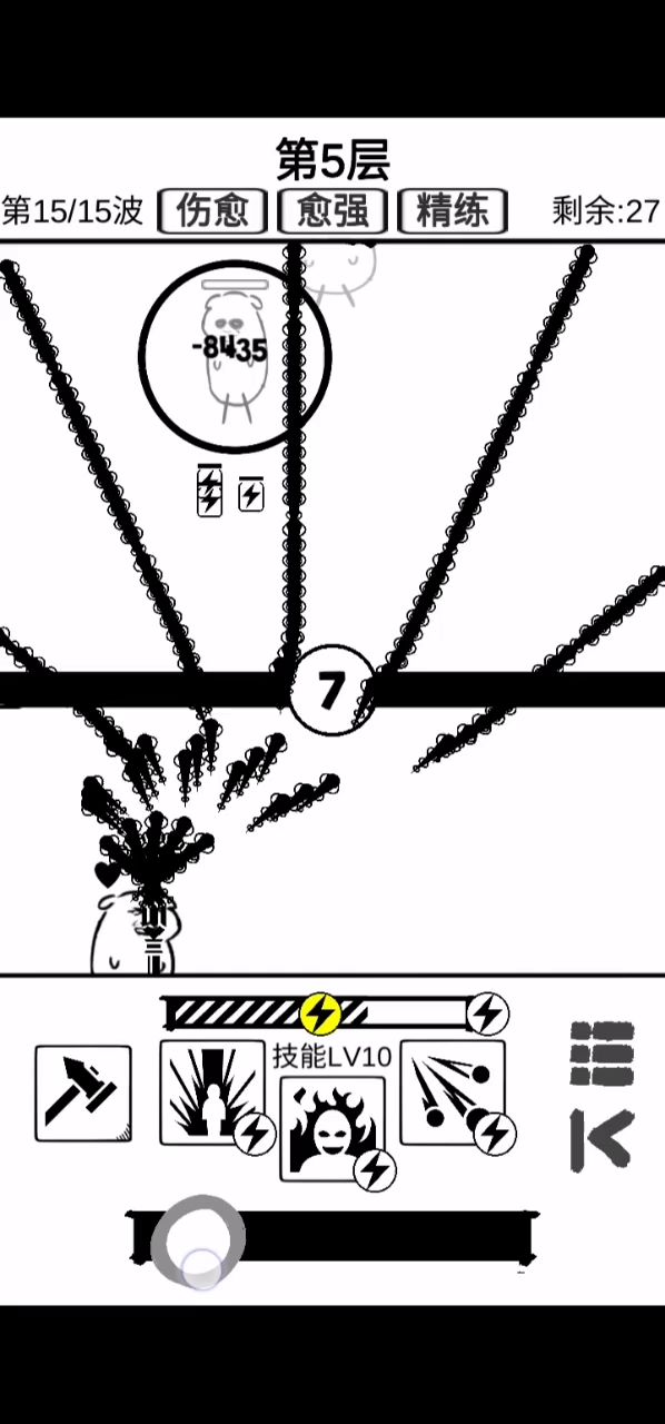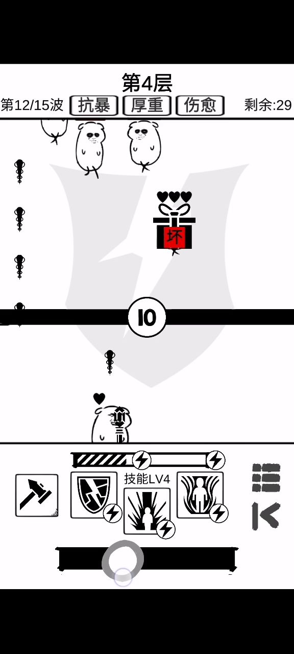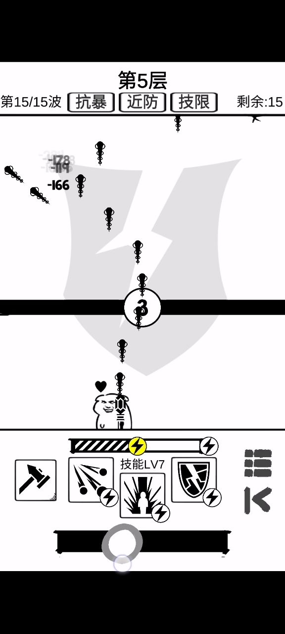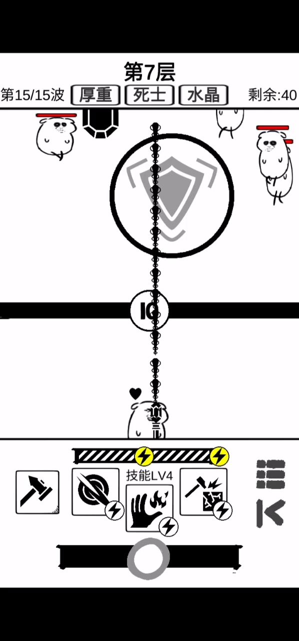 这游戏让我看到了科技和生产力的重要性,以及进一步理解了量产到质变的道理。 现在这阶段,能拿蓝色拿蓝色,有了生产力,才好办事。 然后呢,散射现在这层还能用,不知道再往后行不行。 最强的永远不是boss,而是背景是盾的那个怪,丫的一A出来我建的五十多血的墙一枪给我撸没了,心痛,这玩意可以用加固来挡,没CD的话就只能心疼一下墙了。