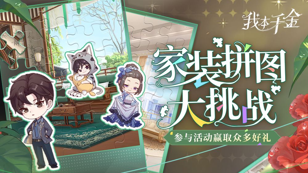 三小姐们,「家装设计」已经上线, 大家是不是装修好属于自己美美的家了呢? 今天给各位三小姐带来「家装设计」的专属活动, 众多福利等着你,一起来看看吧! 家装拼图大挑战 活动时间:2022年8月27日-2022年9月2日 参与方式: 1、游戏内点击【千金活动】进入; 2、《我本千金》官方公众号点击【千金福利】进入。 优秀的三小姐既要眼神好,还要手速快,每日完成任务领取「拼图券」,在限时时间内完成拼图