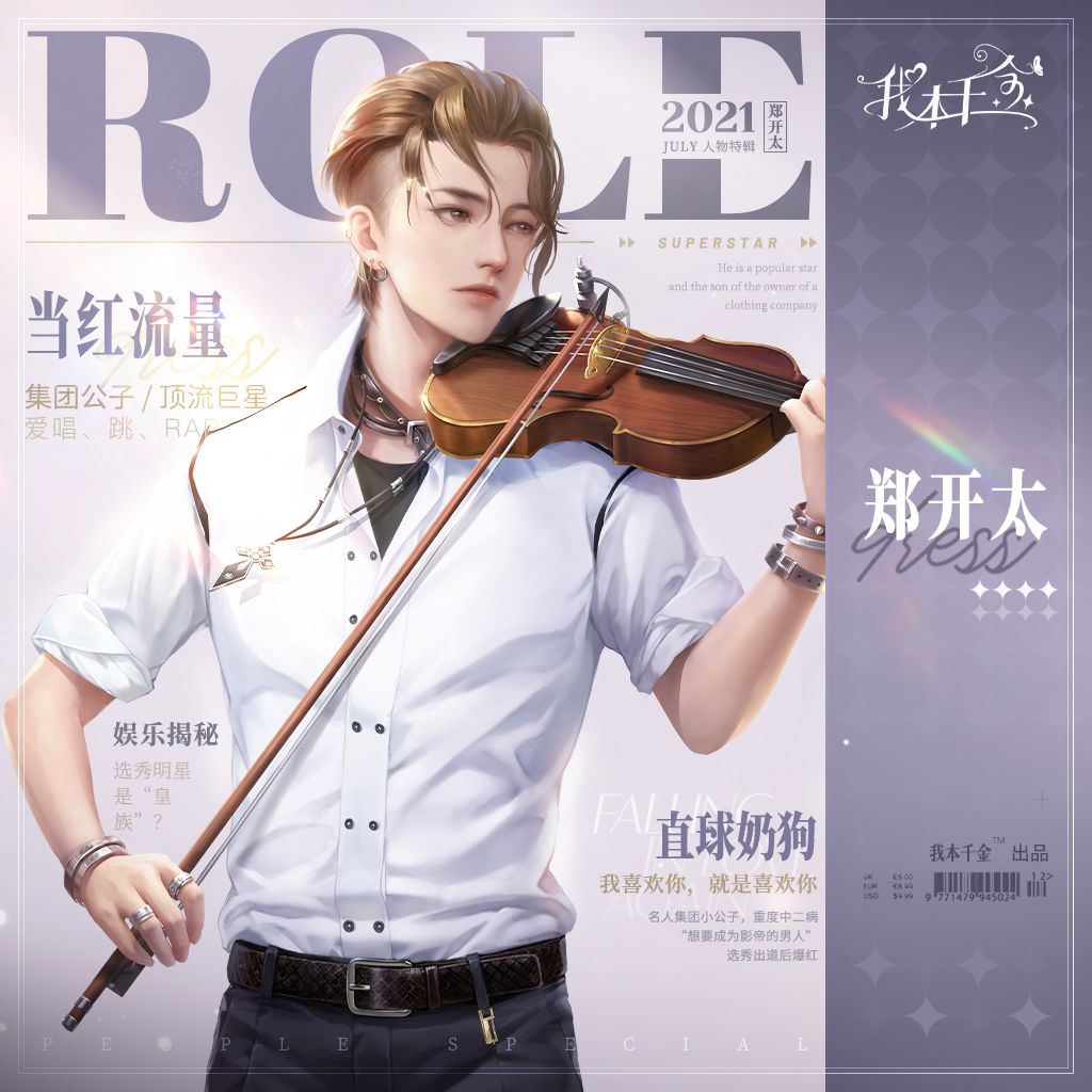 作为名人集团(服装设计)总裁的小儿子,郑开太家境优渥,并且备受家族的宠爱。这个爱撒娇的公子哥兼中二病患者从小就三分钟热度,也不喜欢商业管理,但因为父亲的期望,他只能按部就班地走着父亲为他铺好的路。 郑开太拥有仿佛精雕细琢般的脸庞,英挺、秀美的鼻子和樱花般的唇色。他嘴唇的弧角相当完美,似乎随时都带着笑容,这种微笑,似乎能让阳光猛地从云层里拨开阴暗,一下子就照射进来,温和而又自若。他俊美的脸庞曲线像古