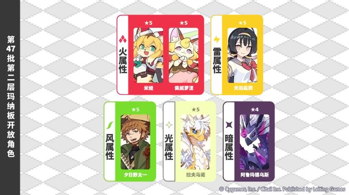 亲爱的冒险者:感谢您一直以来的支持与厚爱。3月20日12:00,部分角色开放「第二层玛纳板」。开放第二层玛纳板之后,对应角色可以通过能力学习来获得能力4至能力6的效果。本次开放「第二层玛纳板」的角色列表如下:■火属性★5角色:宝藏圣诞老人 米娅、纯真可爱的小猫 佩妮萝涅■雷属性★5角色:裁刀的超能力者 天羽凪莉■风属性★5角色:知晓后续的男人 夕日野太一■光属性★5角色:延续
