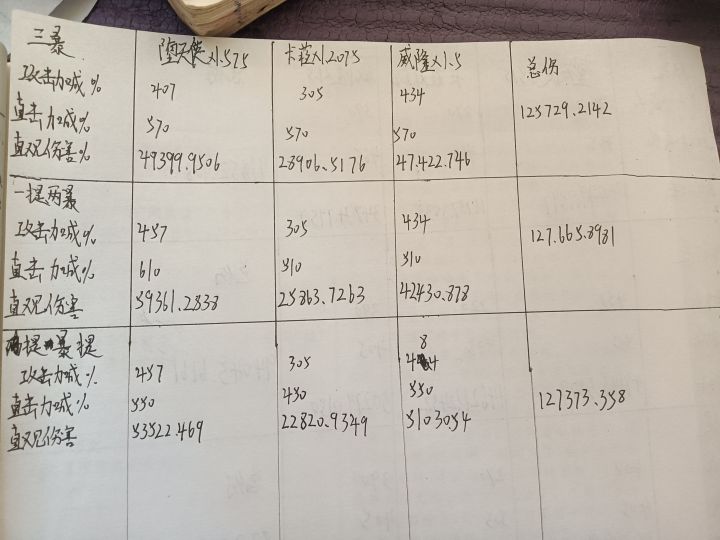 一大早起来又算了算 因为昨天我又把玛纳半升了一下并且将暴食专4 最主要的是我今早在看加成的时候发现昨天的帖子加成有算错的地方(tap还给我设置了精华) 所以加成会有所改变 不多说直接给图 可以看到1提两暴是最优选 其次是提暴提 仅仅只差了几百 当然不是提尔锋弱 暴食加成那么高只是因为队伍玛纳板练度低所以暴食稀释少 这样结论就出来了 如果主要角色第二层玛纳板所有效果的一级都点了 那就选提暴提 反之则是提暴暴 不过大多数人都没有提尔锋吧(我也才专0)