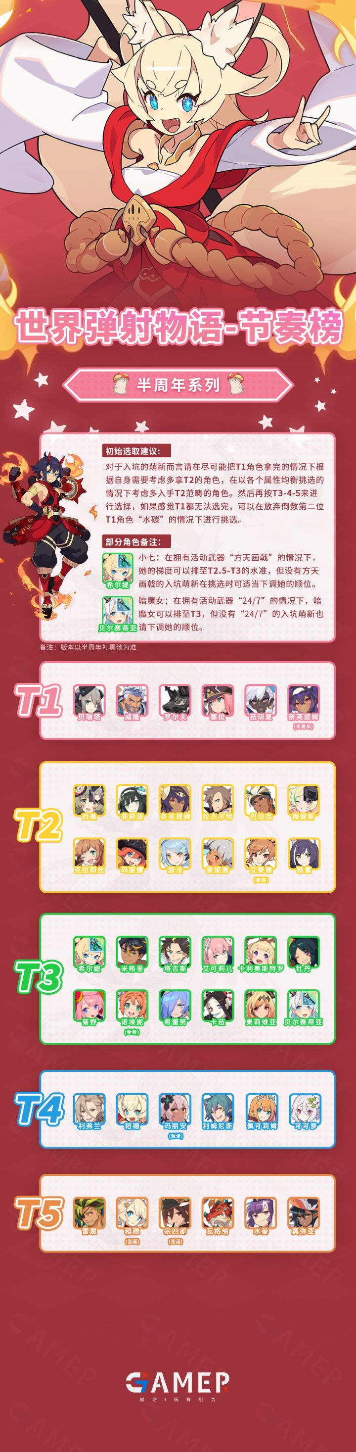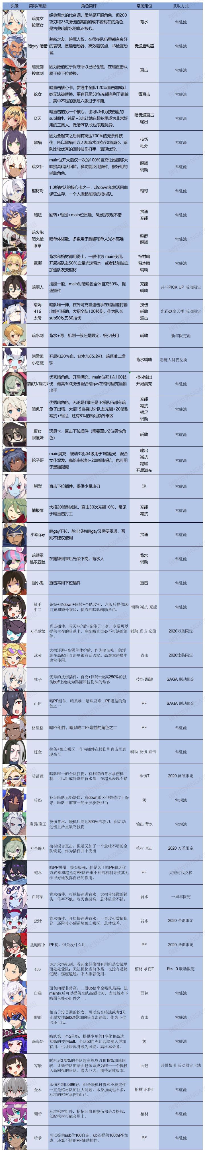 2022.1.7:2周年版本在更新了(其实弹射世界在NGA已经有大量优质帖子,攻略和测评等等,但是近日有少部分人用虚假的攻略内容大肆宣扬,欺骗萌新(就是某个倒过来的节奏榜);为了让萌新不被蒙骗从而多走弯路,笔者将会逐步将一些优质的攻略搬运过来,并为国服特别撰写一些攻略。下面这份全角色简评+黑话百科由NGA@短短喵 撰写半周年前的部分,由笔者完成剩余部分以及之后的更新、维护。前面六张是六个属性