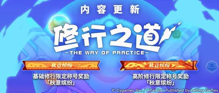 亲爱的冒险者:感谢您一直以来的支持与厚爱。月度活动「阿尔克的修行之道」现已更新,未领取上个月「修行之道」奖励的冒险者将在更新后的首次登录时自动领取未获取的奖励。完成修行任务,获得修行点数。累计修行点数达成对应的修行等级后,获得奖励吧!-活动限定称号-秋意缤纷-活动简介-"阿尔克的修行之道"的奖励分为【基础修行】与【高阶修行】两个部分。所有冒险者均可参与【基础修行】前往商店购买【高阶修