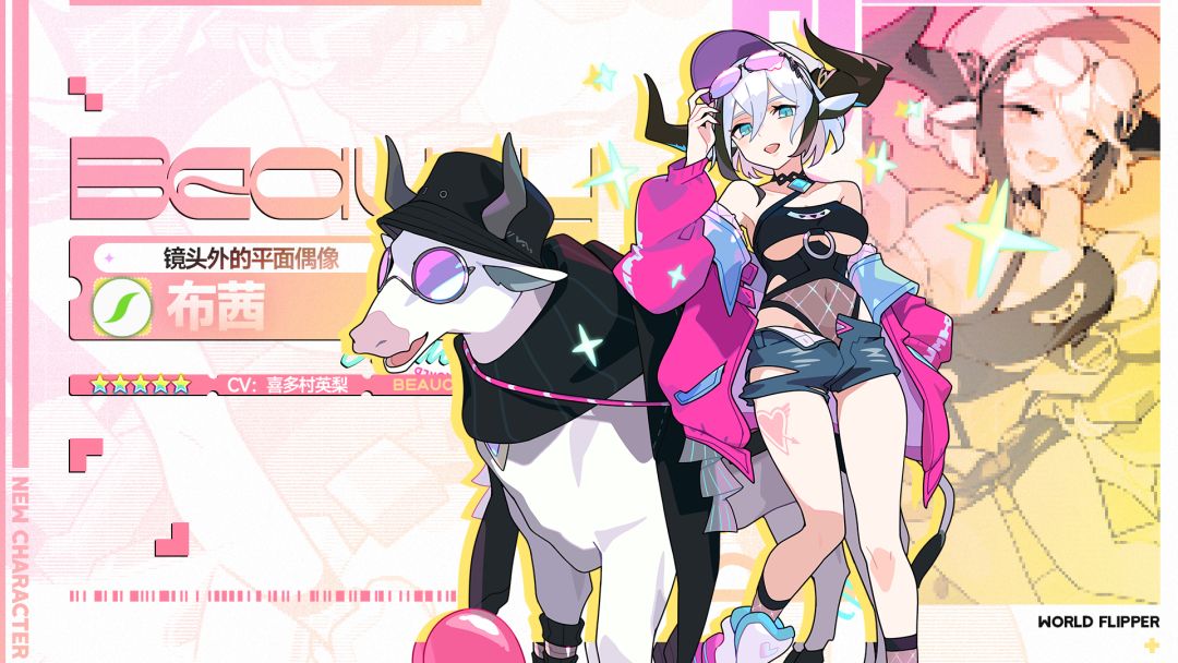 神秘的十二个国家赌上其威信举办了代理战争“宇宙偶像大战”——简称“宇皇偶战”。布茜正是赢得了战争的顶级平面偶像。她强大的宇宙能量与对偶像的爱即便是在休息时间也没有丝毫衰减。口头禅是“BEEF”。 ✦ 属性:风 ✦ 类型:特殊 ✦ 技能:VT OFF SHOT 发布充满诱惑力的花絮照片,赋予风属性队长攻击力提升效果/队长为风属性时,赋予队伍成员强化弹射伤害提升效果/提升连击数 “BEEF。 难得的情