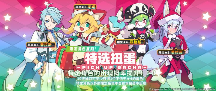 亲爱的冒险者:感谢您一直以来的支持与厚爱。5月1日12:00起,即将举办「复刻角色特选扭蛋」!本次精选扭蛋中,限定★5角色「米娅」、「雷拉斯」、「芙拉菲」、限定★4角色「菲勒斯」的出现概率提升!▼【复刻角色特选扭蛋】详情▼-扭蛋活动时间-5月1日 12:00 ~ 5月8日 11:59-注意事项-1. 活动时间及内容如有变化,我们将尽快告知大家,请各位留意官方信息。2. 限定角色不会