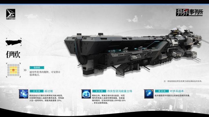 老板,今日为您呈递的情报是“强袭舰”的情报。我知道这份情报与其他舰种相比呈递得稍微晚了一些,因为有些极密等级的情报,获取起来相对来说比较复杂。不过还好,已经能形成可以递交的形式了。强袭舰一共有6艘,无论是打击还是护卫,表现都相当卓越,并且强袭舰可以安排在作战地图中的强袭地点,充当战斗先锋的位置。以下就是全部强袭舰的情报,老板,可以开始查阅了。强袭舰-伊欧戳图两指放大查看详细内容强袭舰-